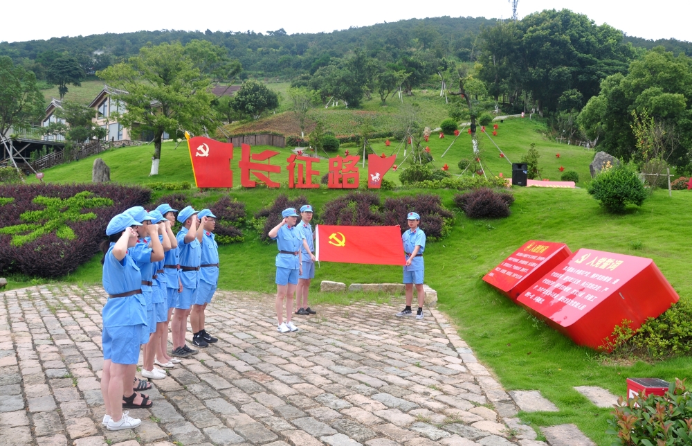 在出发地山脚下,大家面对鲜艳的党旗,重温入党誓词。接着,党员们冒着炎炎烈日,徒步2.5公里,模拟“瑞金出发”、“血战湘江”“强渡乌江”等11个体验节点,感受80多年前红军那场浴血奋战的宏伟悲壮历史。