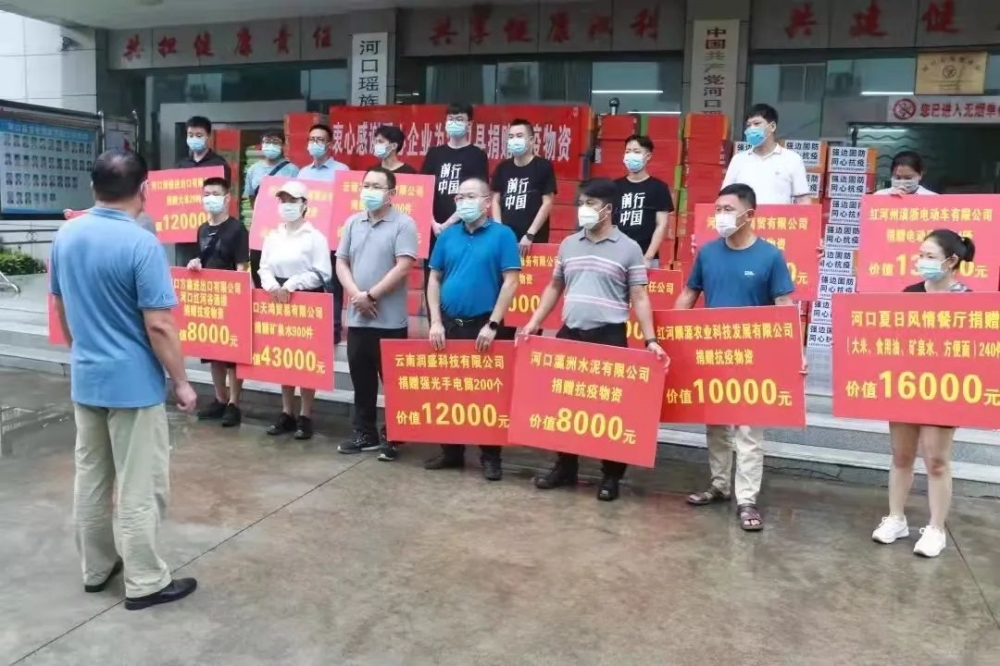 疫情当前,云南蒙自瀛洲水泥公司所属河口公司全员进入抗“疫”工作,立即组建志愿服务队,在公司值班点、在区域核酸检测点、在社区服务最前线,抗击疫情、传递温暖。该公司还调度车辆为项目建设拉运物资,并先后向当地政府及社区项目建设、河口边境疫情防控一线执勤卡点基础设施建设、卫生院疫情防控捐赠水泥达100吨;向河口县抗疫捐赠8000元善款;向抗疫一线工作人员捐赠150余件矿泉水,积极助力当地疫情防控。