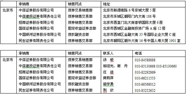 投资者可以在本期债券发行期限内到下列地点或互联网网址查阅上述备查文件: