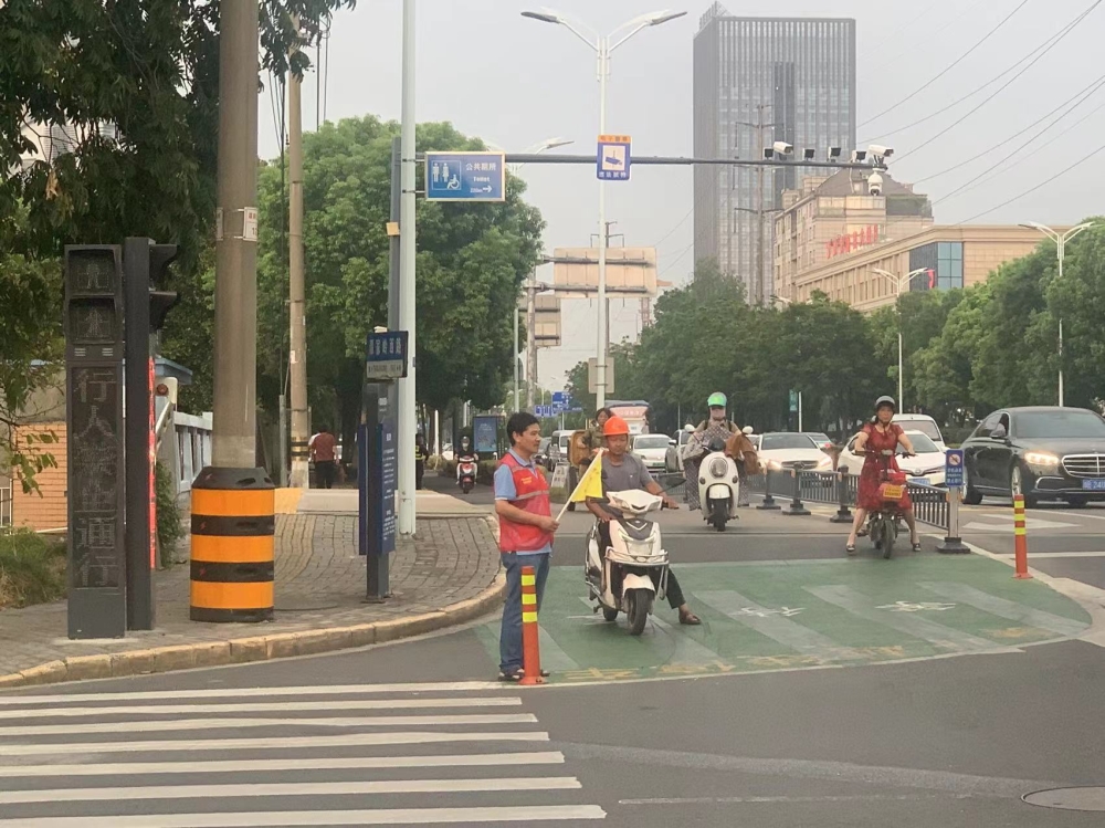 炎炎夏日,志愿者们身穿红马甲,手持小黄旗,面带微笑、文明用语,协助交警维护现场交通秩序,引导机动车在斑马线前主动礼让,对行人闯红灯、不走人行道等行为进行劝阻,劝阻非机动车等红灯时超越停车线、违规载人、在人行道上骑行等交通违法行为,以实际行动引导更多市民群众自觉遵守文明交规,争当文明市民的表率。