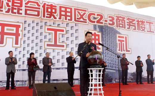 市建委党工委书记、主任,东部新城总指挥虞银花在开工典礼上致辞。她说,东部新城作为宁波城市“东扩”的“排头兵”,是“中提升”战略的龙头区块和宁波未来“一心二核”城市空间格局的重要组成部分。加快东部新城的开发建设,对于拉开城市框架、拓展城市空间、提升城市功能具有重要战略意义。C2—3商务楼是东部新城十二个功能区块的重要组成项目之一,它的开工建设将进一步提升东部新城行政办公综合区的区域形象、完善东部新城的功能配套、加速推进“中提升”战略的实施。虞主任希望各单位按照市委、市政府实施新一轮重大项目会战攻坚的总体目标和保增促调要求,认真抓好C2—3地块建设,力争把C2—3地块商务楼建设成东部新城的亮点工程、示范工程和形象工程,为提升宁波中心城区发展水平、建设现代化国际港口城市作出应有的贡献。