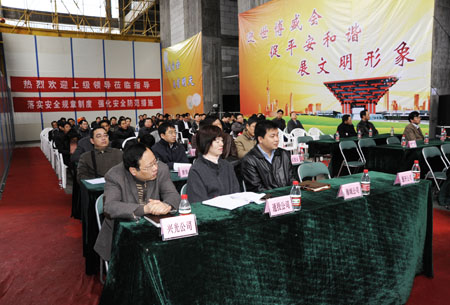 会议首先以短片形式介绍了B9商务楼开展安全生产和文明施工管理的经验和做法,施工单位代表发言,表示将继续抓好文明施工、安全生产管理。接着建设单位海城公司代表作题为《迎世博、树新风,以文明施工促进安全生产》的发言,表示将切实以文明促安全生产,迎接世博,为best365英国体育在线事业再立新功。随后,best365英国体育在线公司总经理周宏伟发言。他回顾总结了best365英国体育在线公司一年来安全生产工作,部署了2010年安全生产任务。他要求各子公司积极响应市委市政府“迎世博、争创全国文明城市三连冠”的号召,创新突破,扎实做好2010年安全生产工作,加快推进长效机制建设。
