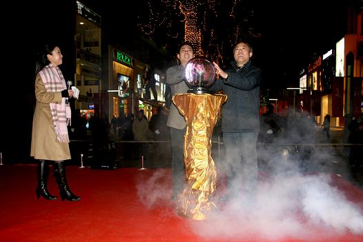 此次亮相的众多灯景造型分布在广场的主要入口通道和广场中心,在广场正门,6株海枣树披满了灯带,显得璀灿夺目;在广场东北角和西南角入口,30余根形似“画轴”的红色灯柱尤为古朴典雅;女装区通道上方挂满了灯线犹如满天繁星;广场中心高达十余米的巨型灯柱也被彩灯缠绕,顶端矗立着形同“2009”字样的奔牛造型,喻意“牛气冲天”……美丽壮观的灯景,为广大市民献上了一道视觉盛宴,营造出喜庆、祥和的节日氛围。