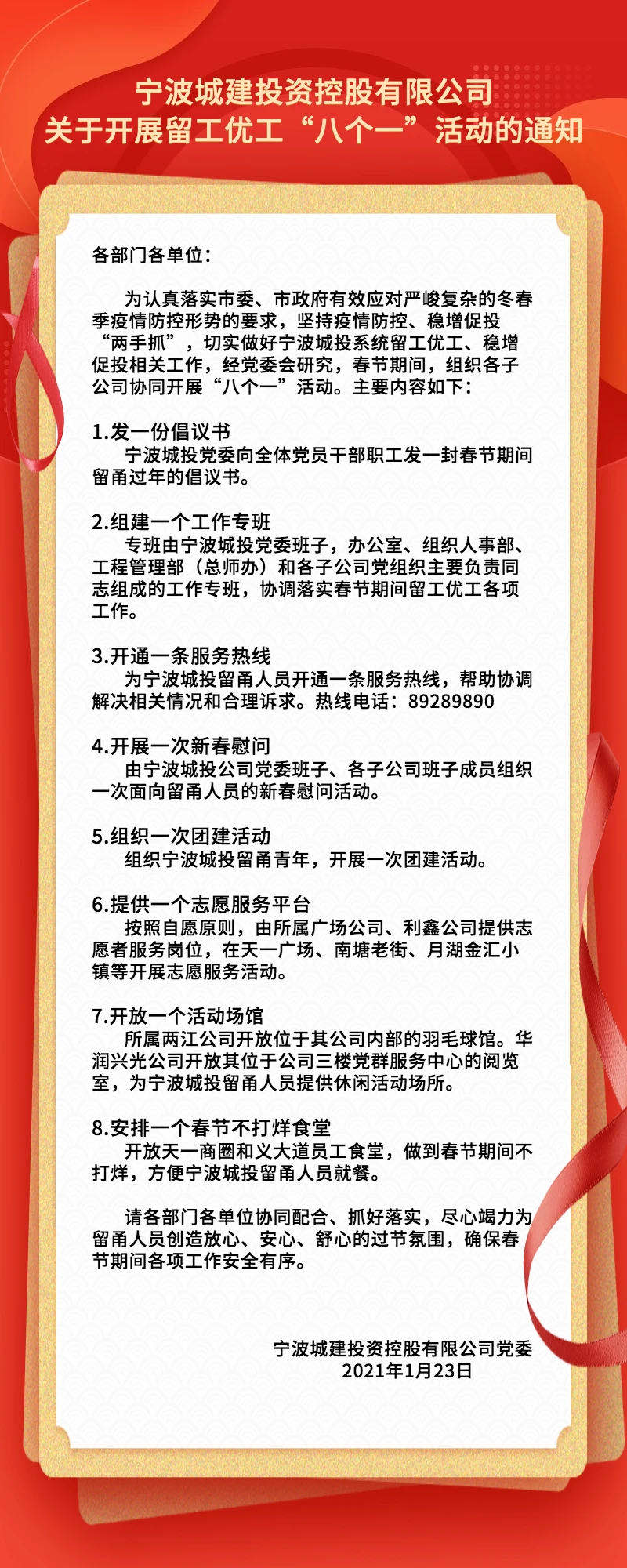 然而,如今新冠肺炎疫情防控形势仍非常严峻,为共同筑牢疫情防控的全民防线,配合冬春疫情防控大局,市委、市政府在2021年第一个工作日就出台了支持企业留工优工的政策,提出了稳定生产、留工稳岗、关爱暖心、服务保障等7方面政策措施,鼓励外地职工留在宁波过年。市里政策发布后,宁波best365英国体育在线积极响应,第一时间着手研究制定多项留工优工的落实举措,从补贴福利、节日活动等方方面面,保障您春节期间在宁波的生活和工作。让大家过一个健康、安全、有意义的新春佳节!