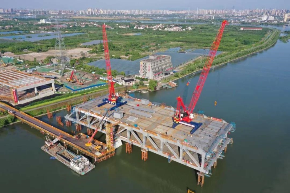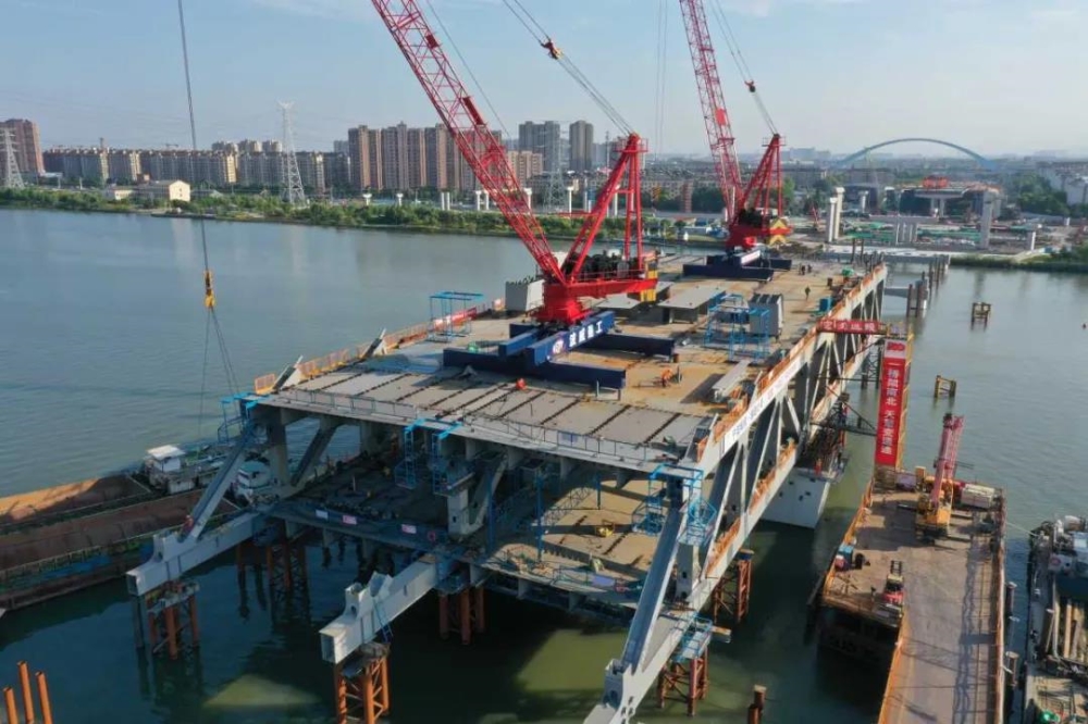 “一个钢桁梁节段由数十个杆件组成,总重量400多吨。完成一个钢桁梁节段安装需要7天到10天。”大桥建设方宁波通投公司项目负责人童李凯介绍,截至本月14日,项目累计完成投资约20亿元,年度完成投资2.34亿元,占年度计划的26%。上部结构完成约56%,下部结构完成约91%。其中西洪大桥主桥已全面进入水上上部钢结构安装阶段。
