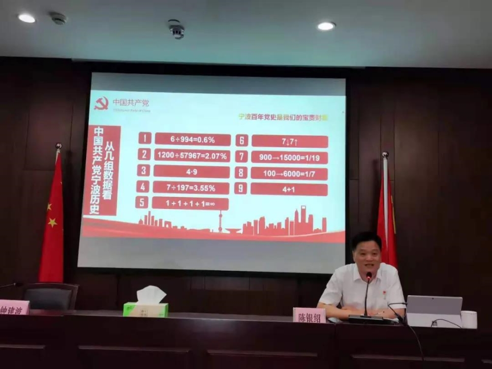 陈主任与大家一起学习了“学史明理、学史增信、学史崇德、学史力行”,“学党史、悟思想、办实事、开新局”的总要求,阐述了开展党史学习教育的重要性和必要性。通过翔实的史料、丰富的案例,并用数字化方式讲解了1925至1949年中国共产党宁波历史。结合新发展阶段宁波的历史使命,引导全体党员和干部职工深刻理解从“英雄城市”到“硬核力量”的内涵,立足岗位,增强发展信心和决心,主动在宁波锻造“硬核”力量、唱好“双城记”、建好示范区、当好模范生、加快建设现代化滨海大都市的新征程中,像前辈一样,向党交上一份高分答卷。