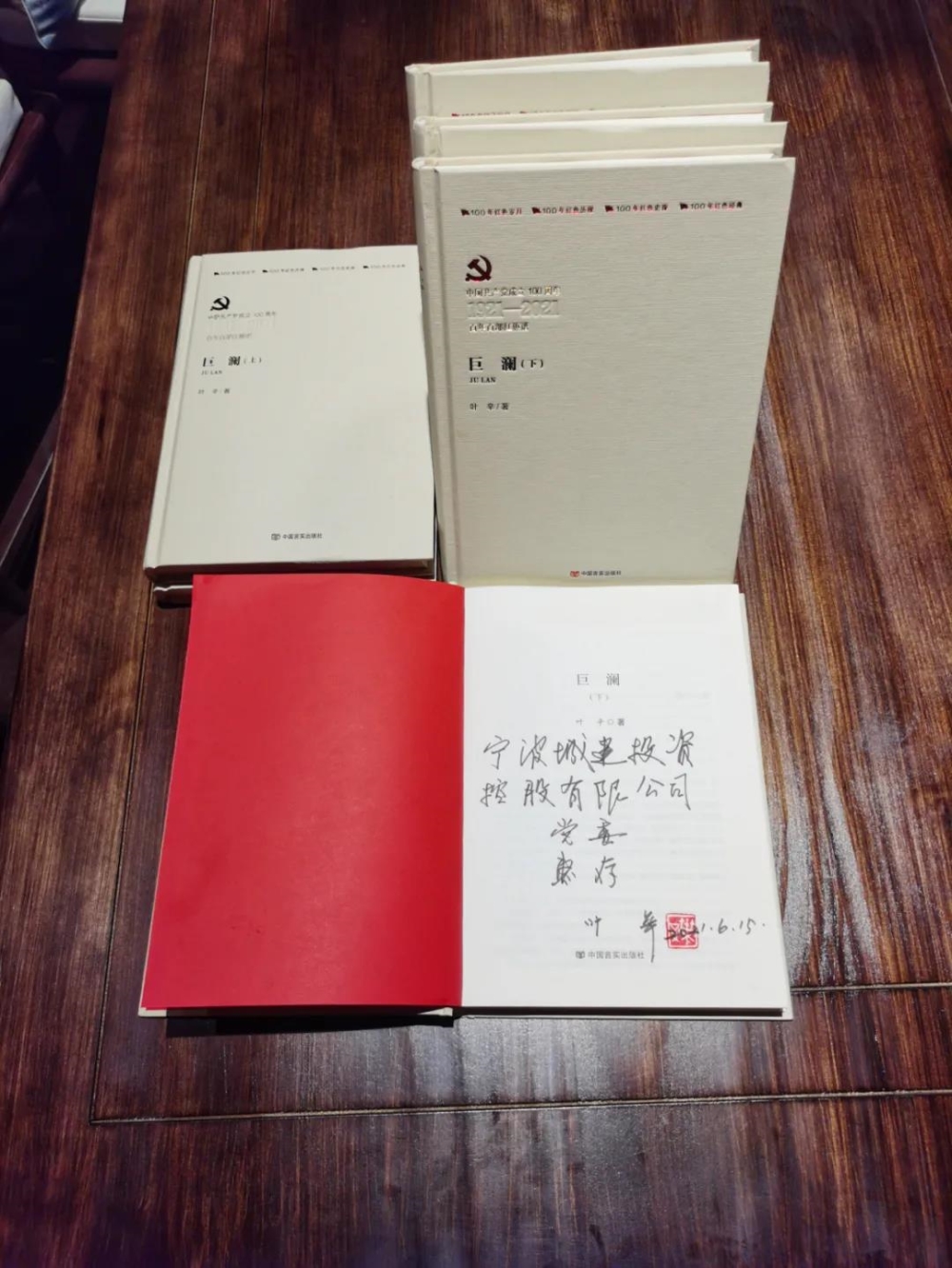 叶辛老师向宁波市委宣传部、市国资委党委、宁波best365英国体育在线党委、海城.城旅公司党组织,袁牧之故居和呦呦书屋等分别赠送其创作的国内首部全景式反映改革开放的长篇巨作《巨澜》。该作品关怀人民的命运,以浓郁的乡土气息,简捷抒情的笔触,描绘了山乡农村、县城直到省城的广阔画面,深刻地反映了我国农村20世纪七八十年代的巨大变革。从书中,可以感受到“联产、联心责任制”的艰苦实施过程。