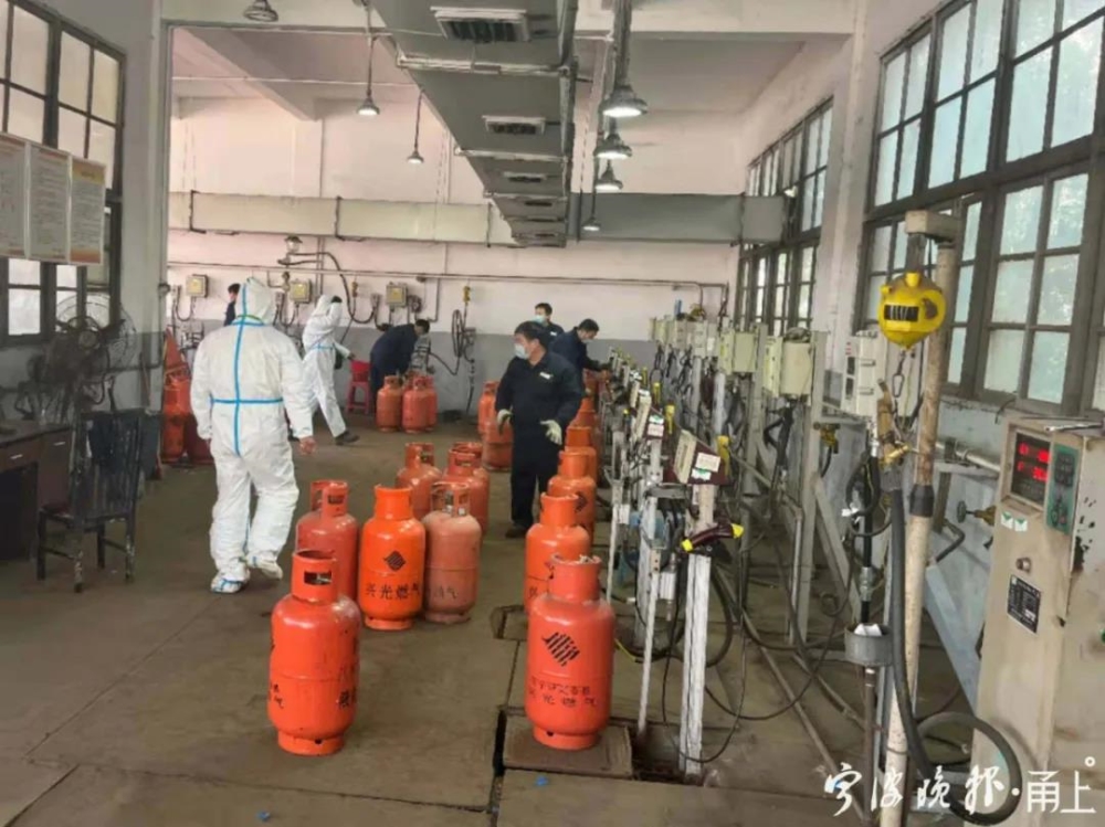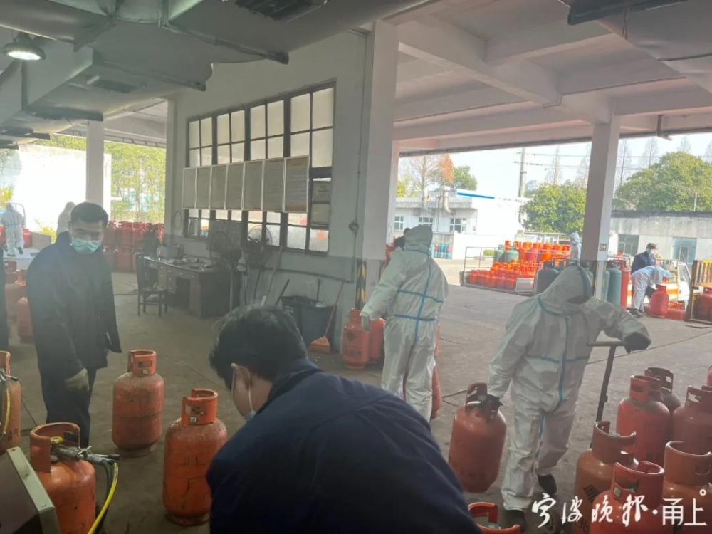 北仑实施临时封闭管理后,根据防疫要求,区域内瓶装液化气不能由送气工点对点配送到户。兴光液化气公司第一时间成立防疫保供工作组,落实防疫和保供工作,调拨应急防疫物资支援北仑储配站。