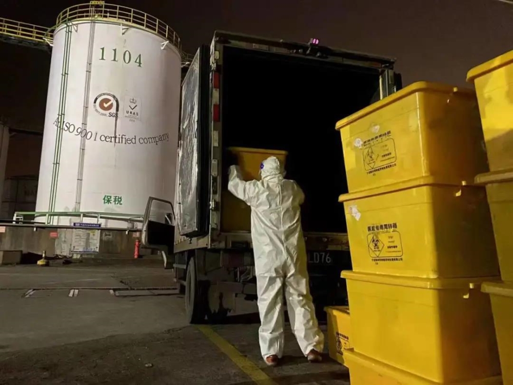 作为宁波唯一的医疗废弃物收运服务单位,枫林特废公司行政部、客服部、联运部、安环室等100多名职工发扬连续作战精神,主动驰援北仑战“疫”,确保涉疫废弃物和医废的收运各环节高效有序。