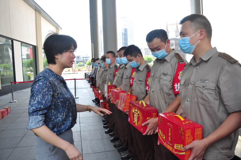 7月5日至6日,甬城虽未入伏,但已连续多日高温。公司总裁马林霞、工会主席张怡分别代表领导班子慰问天一广场安保人员和科环公司坚守生产一线的职工,送上慰问金和防暑饮品,叮嘱大家要注意防暑和安全作业,并要求各公司做好安保、保洁、维修、施工等高温一线职工的劳动保护工作。