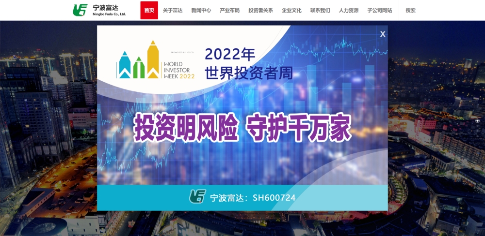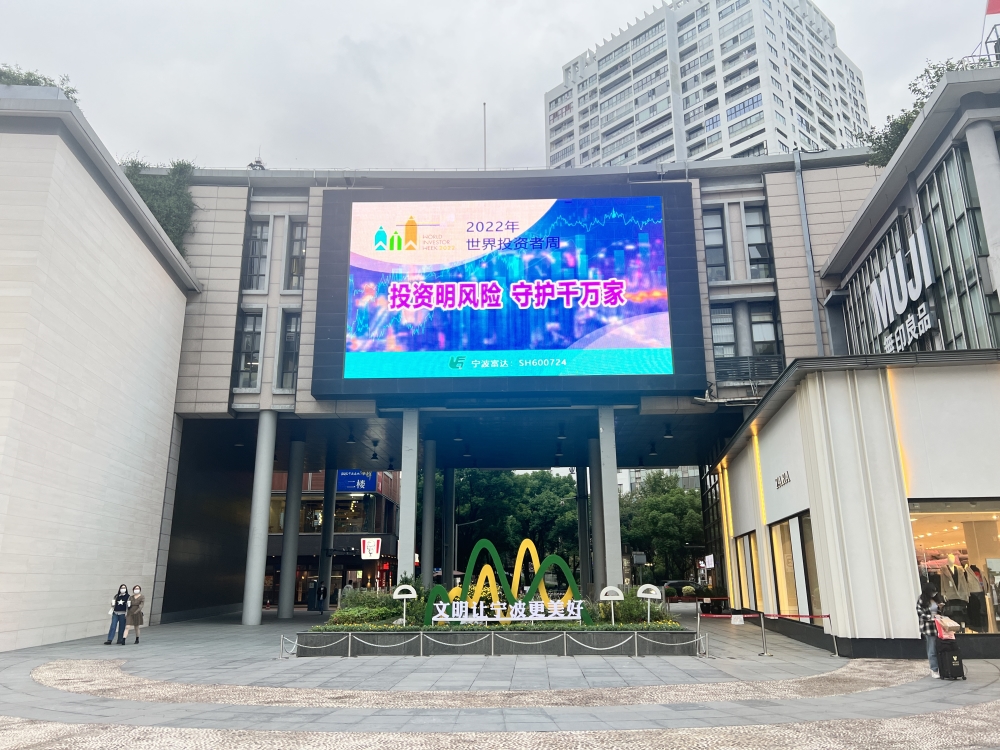 富达公司积极响应宁波证监局开展“2022年世界投资者周”投资者保护宣传活动号召,围绕“投资明风险 守护千万家”活动主题,精心筹划,营造良好活动氛围。公司通过天一广场、月湖盛园入口处电子屏和官网宣传播放保护投资者合法权益的标语及活动标识,为树立上市公司良好形象,增进投资者对公司的了解,凝聚市场共识,构建规范的资本市场做出积极努力。