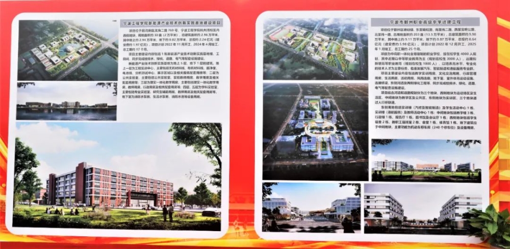 此次集中开工的4个项目总投资约15.34亿元,总建筑面积约20.48万平方米,由公建中心集中建设,包括鄞州职业高级中学迁建、宁波大学西校区研究生公寓和综合生活中心、宁波大学甬江研究生公寓3号楼、宁波工程学院新能源产业技术创新实践基地等建设项目,对推动职业教育、高等教育的发展以及人才的引进工作都具有十分重要的意义。