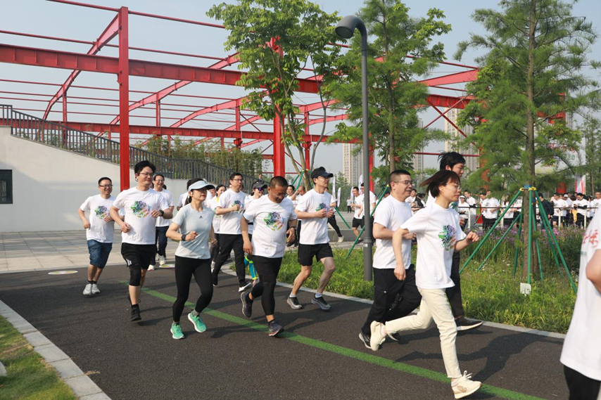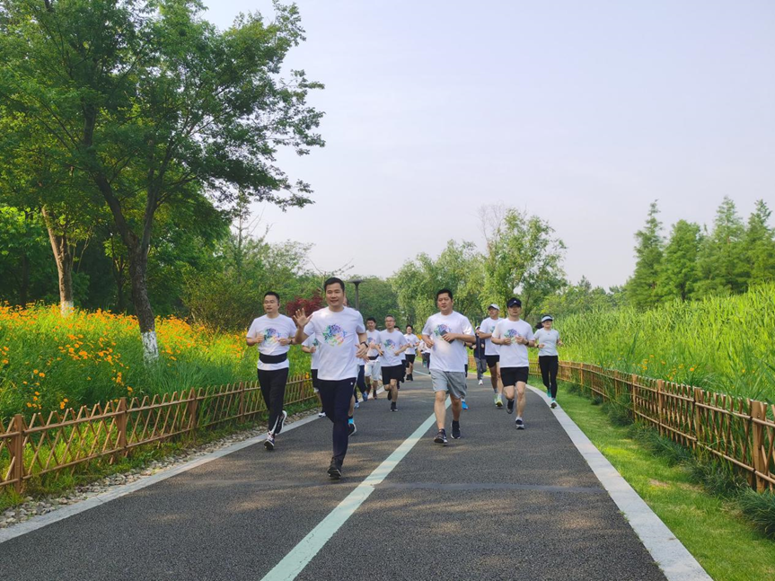 随着发令员一声发令,“跑团”兴趣团第一次活动正式开跑。此次慢跑活动沿生态走廊设置路线,全程4.5公里,由一名工作人员领跑,中途设置一个补给站和打卡点。跑团成员们依次向赛道奔涌而去,一个个矫健的身影与生态走廊的美景相得益彰,绘写了一幅活力十足的画卷。