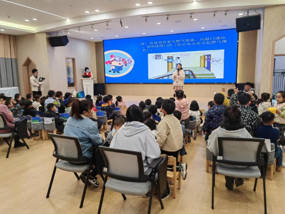 结对学校单位,普及燃气知识。镇海分公司积极与镇海多所高校、幼儿园结对,联合举办相关宣传活动。以宁波工程学院校庆为契机,开展包含教职员工在内150人的宣讲课堂,对食堂及其商业街的隐患进行晾晒,并于校庆前协助完成整改;在盛家星河幼儿园,志愿者通过实物演示,结合燃气知识自编小游戏、朗诵顺口溜,以寓教于乐的形式在小朋友心中埋下安全意识的种子。
