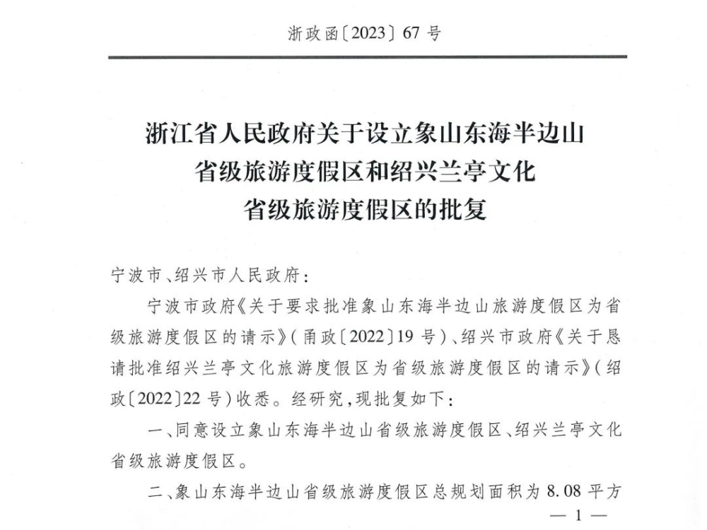 再添“金字招牌”!浙江省人民政府近日发布《浙江省人民政府关于设立象山东海半边山省级旅游度假区和绍兴兰亭文化省级旅游度假区的批复》,同意设立象山东海半边山省级旅游度假区,是此次获批的全大市唯一的一家。