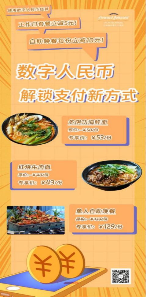 为促进数字人民币的普及宣传,提高用户对数字人民币的认知度和使用率,宁波逸东豪生大酒店推出数字人民币支付结算专属优惠活动,为广大消费者提供更新潮的消费场景、更贴心的消费氛围。
