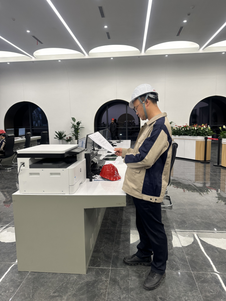 环保集团突出检查洞桥垃圾焚烧发电新建项目安全生产情况,抽查中控室值长记录,查看设备调试运行数据,询问异常情况,并对厂区进行全方面巡检。