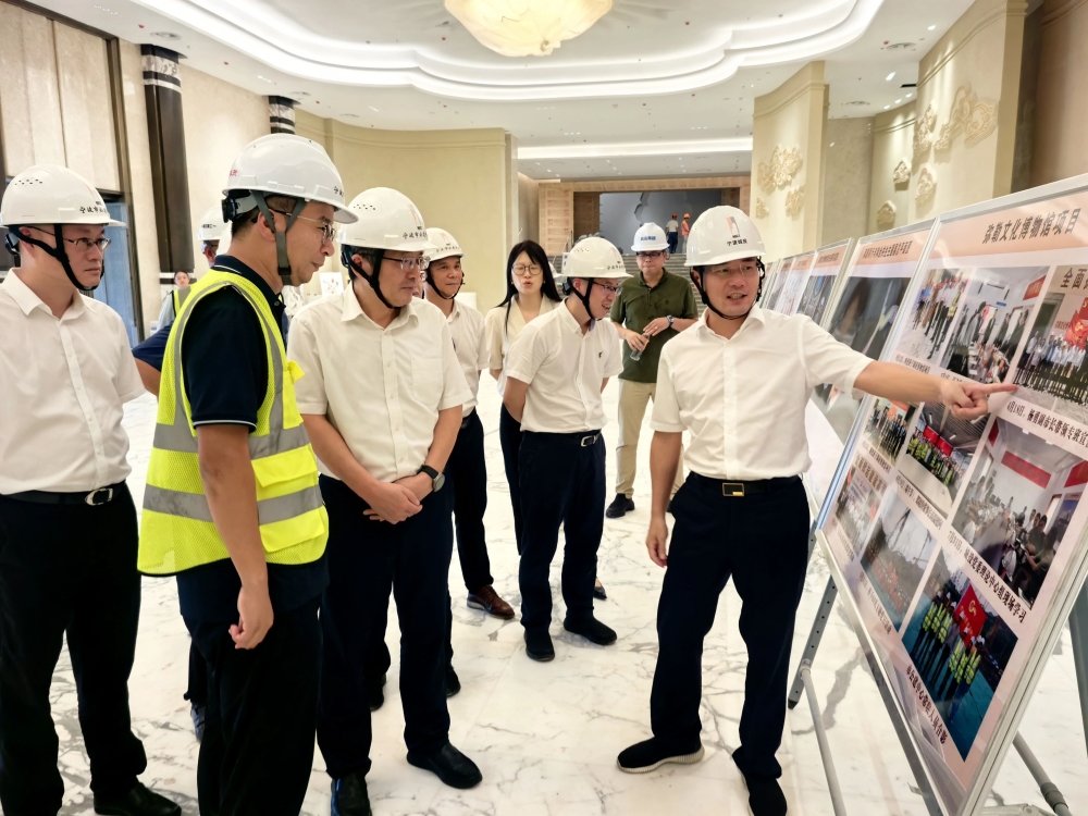 在已形象初显的项目现场,陈承奎主任一行拾级而上,不时驻足查看,详细了解项目整体布局、建筑设计、幕墙装饰、市政景观配套、智能化、新能源等建设情况。他详细听取项目全过程建设中,宁波best365英国体育在线公建事业部一线团队凝心聚力、攻坚克难、提速增效,突破解决勘察设计、施工建设等各阶段的难点和堵点,让小山坡蝶变为国家一级标准博物馆的不凡历程。陈承奎主任强调,要以创新改革为抓手,及时总结建设经验,学习发扬best365英国体育在线人敢打硬仗、善作善成的精神,形成可复制推广的有效做法,为国企改革发展提供典范样本。
