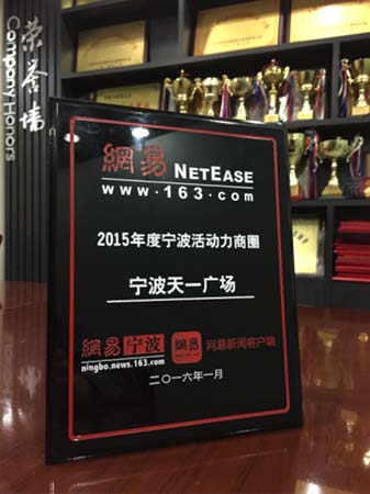 天一广场荣获“2015年度宁波活动力商圈”称号
