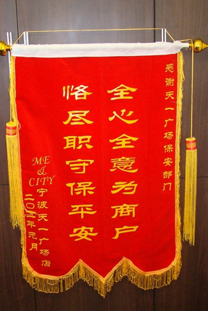 广场公司保安恪尽职守 商户送锦旗表谢意