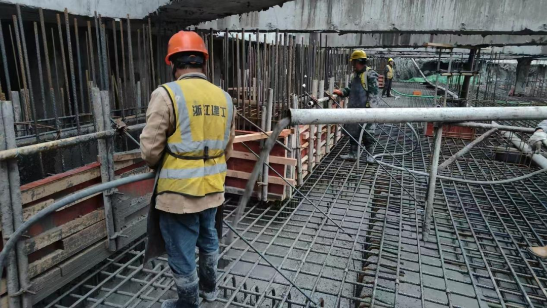 此次底板浇筑施工面积达760平方米,混凝土用量630立方米,施工难度大、技术要求高。为确保浇筑工作顺利进行,海城公司牵头各参建单位持续攻坚,克服了复杂地质条件和连续雨水天气等诸多不利因素,以安全质量为核心,周密部署,提前制定了详细的施工方案和应急预案。施工过程中,项目部密切关注每一道工序,及时研判调整,从钢筋绑扎、模板支设到混凝土浇筑,均严格按照设计要求和施工规范执行。此次底板浇筑的顺利完成,不仅为后续施工创造了有利条件,也展现了项目团队高效协作、攻坚克难的精神风貌。