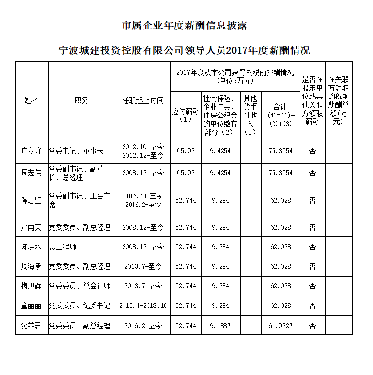 best365英国体育在线公司经营班子成员2017年度薪酬情况