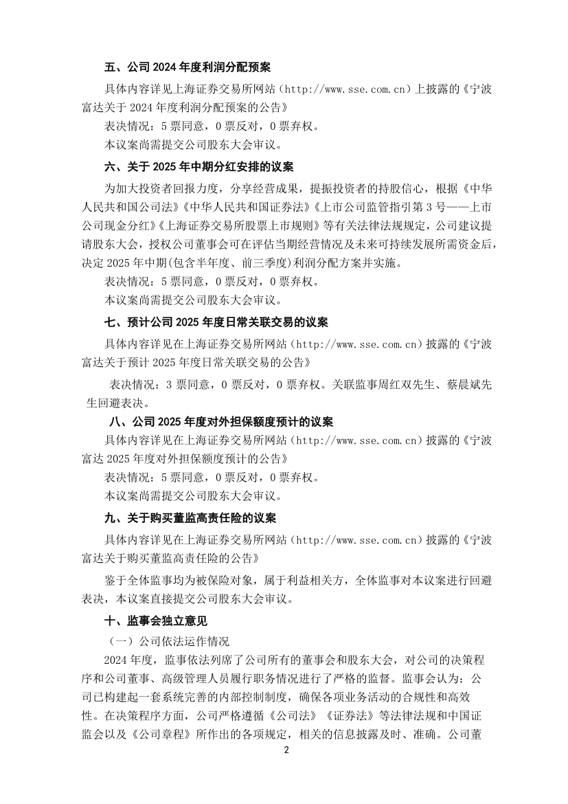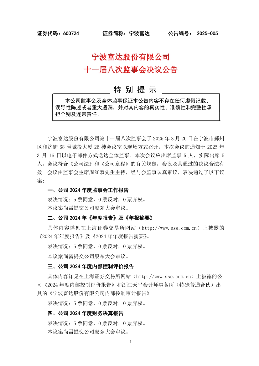 宁波富达股份有限公司十一届八次监事会决议公告