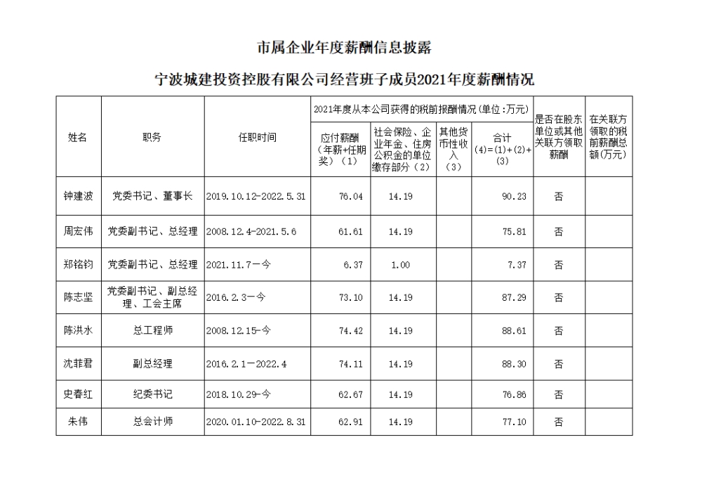 best365英国体育在线公司经营班子成员2021年度薪酬情况