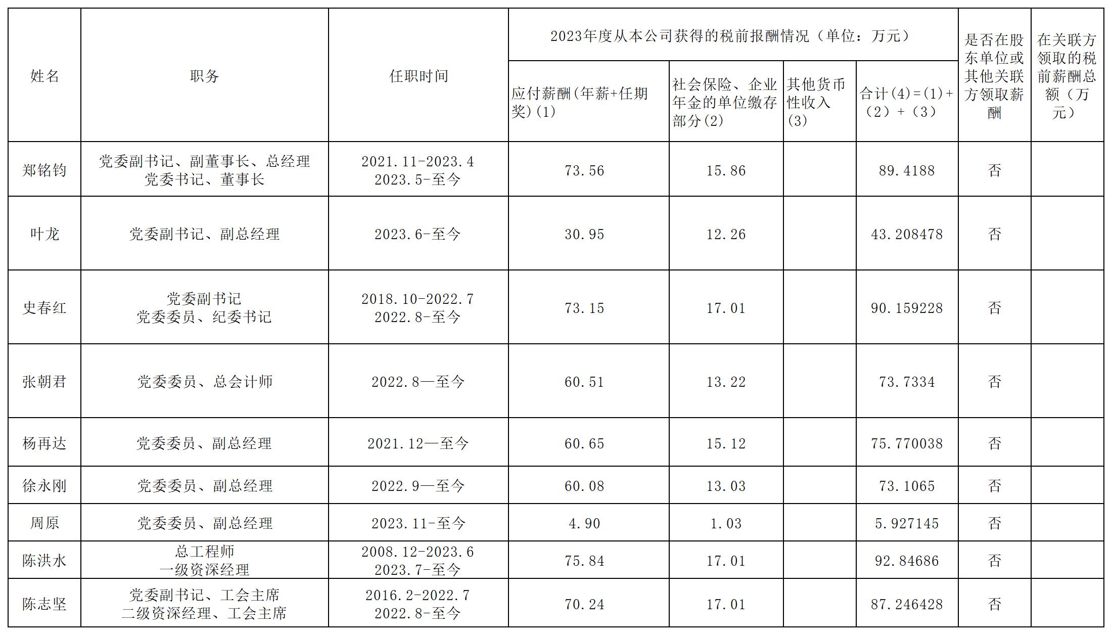 best365英国体育在线公司经营班子成员2023年度薪酬情况